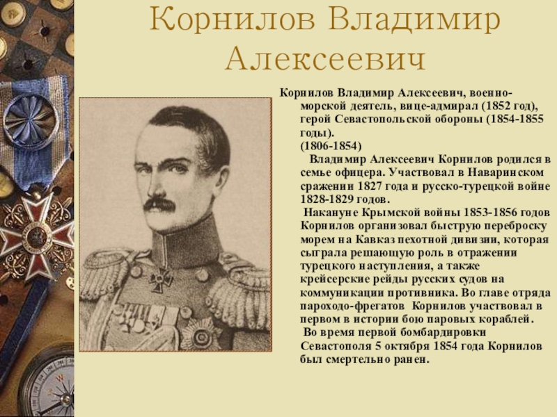 Корнилов Владимир Алексеевич, военно-морской деятель, вице-адмирал (1852 год), герой