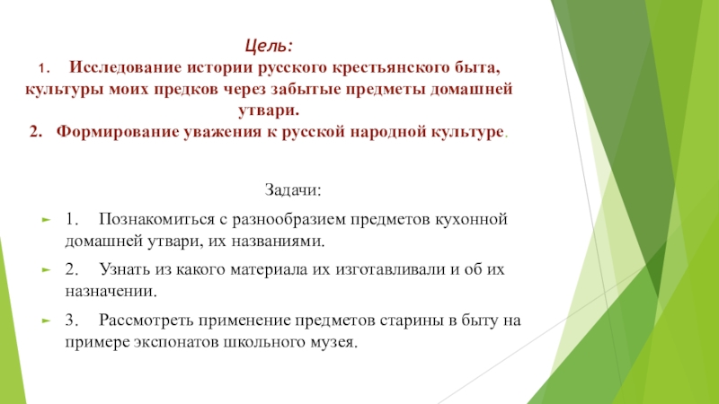 1. Познакомиться с разнообразием предметов кухонной домашней утвари, их названиями.