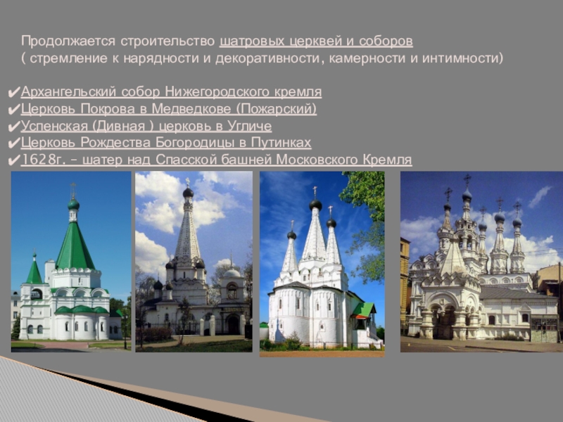 Слайд 18Продолжается строительство шатровых церквей и соборов