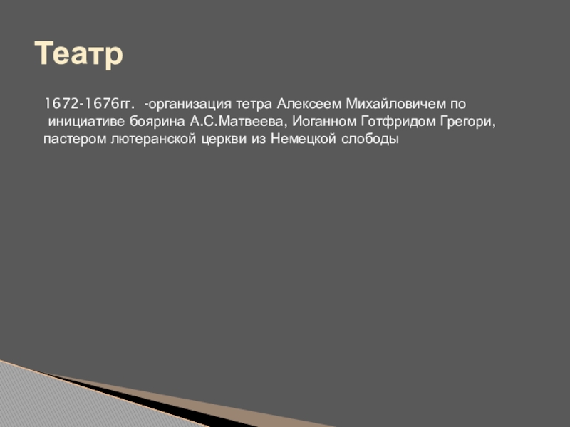 1672-1676гг. -организация тетра Алексеем Михайловичем по