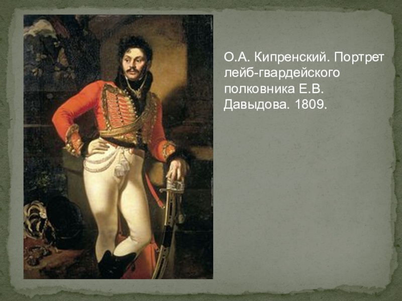 Слайд 5О.А. Кипренский. Портрет лейб-гвардейского полковника Е.В. Давыдова. 1809.