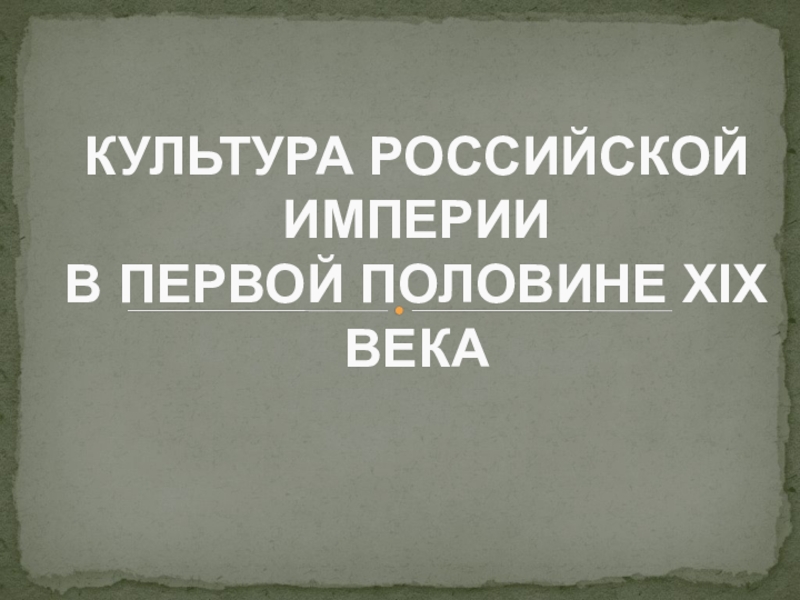 Слайд 1КУЛЬТУРА РОССИЙСКОЙ ИМПЕРИИ В ПЕРВОЙ ПОЛОВИНЕ XIX ВЕКА