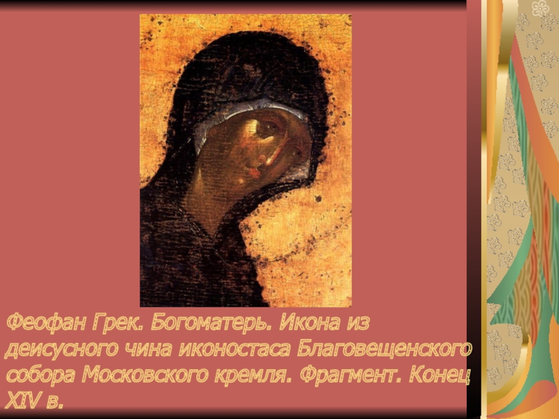 Слайд 10Феофан Грек. Богоматерь. Икона из деисусного чина иконостаса Благовещенского собора Московского