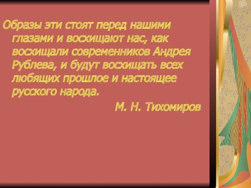 Слайд 25Образы эти стоят перед нашими глазами и восхищают нас, как восхищали