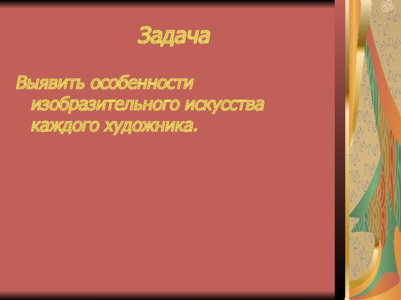 ЗадачаВыявить особенности изобразительного искусства каждого художника.