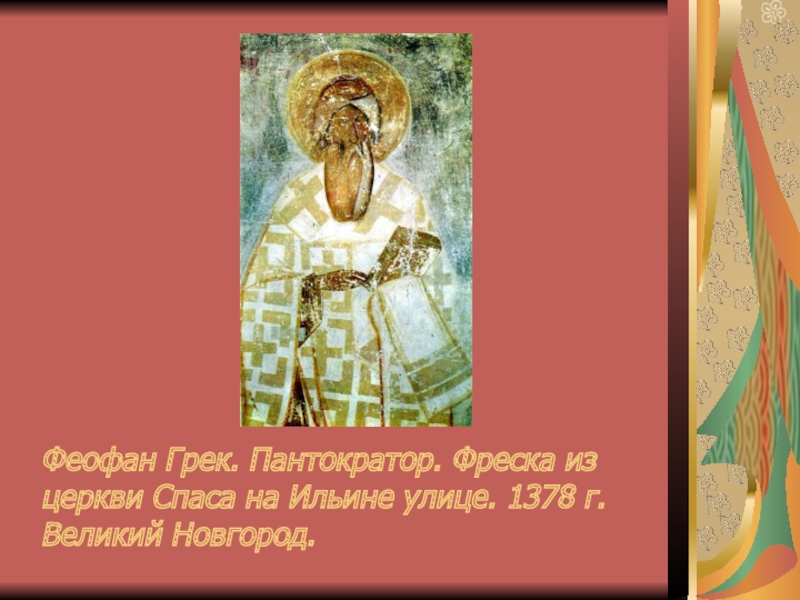 Слайд 12Феофан Грек. Пантократор. Фреска из церкви Спаса на Ильине улице. 1378