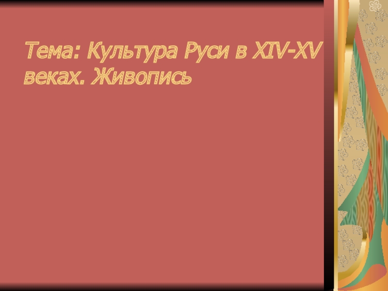 Слайд 1Тема: Культура Руси в XIV-XV веках. Живопись