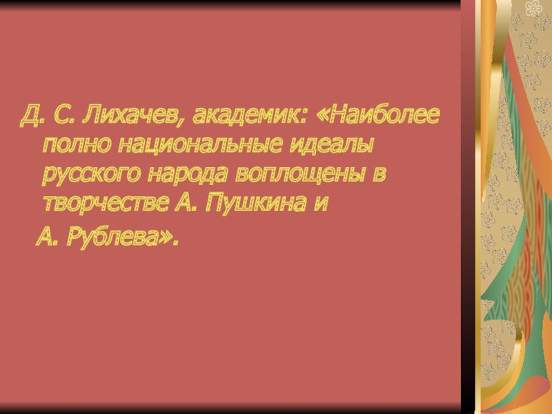 Д. С. Лихачев, академик: «Наиболее полно национальные идеалы русского народа воплощены