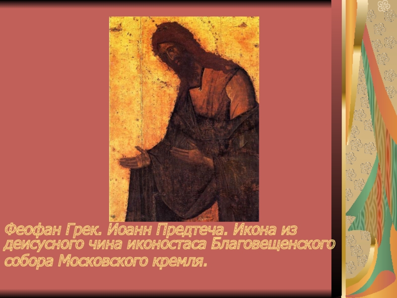 Слайд 9Феофан Грек. Иоанн Предтеча. Икона из деисусного чина иконостаса Благовещенского собора