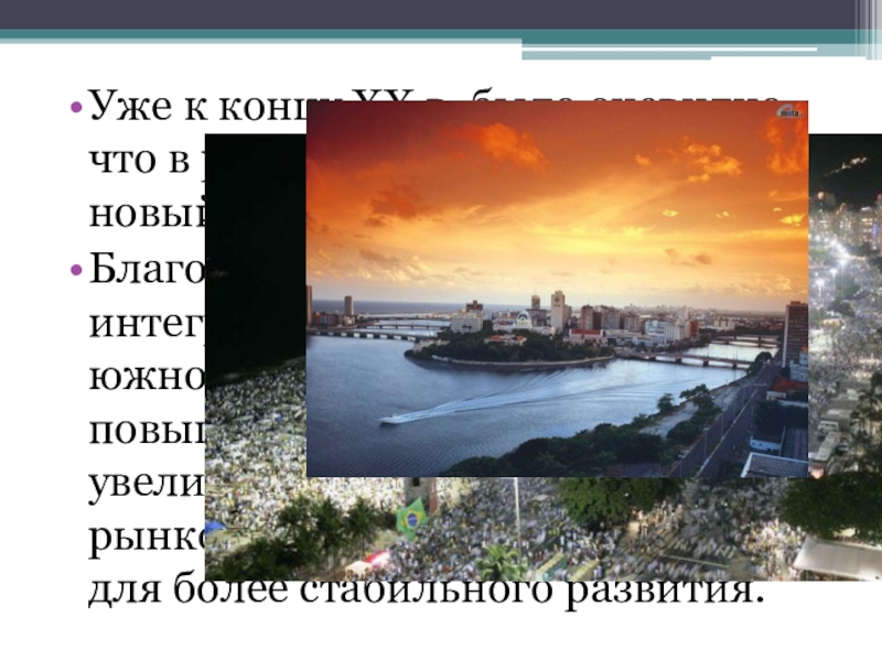 Благодаря развитию интеграционных процессов на южно-американском континенте, повышению уровня жизни увеличилась ёмкость внутренних рынков, что создаёт предпосылки для более стабильного развития.