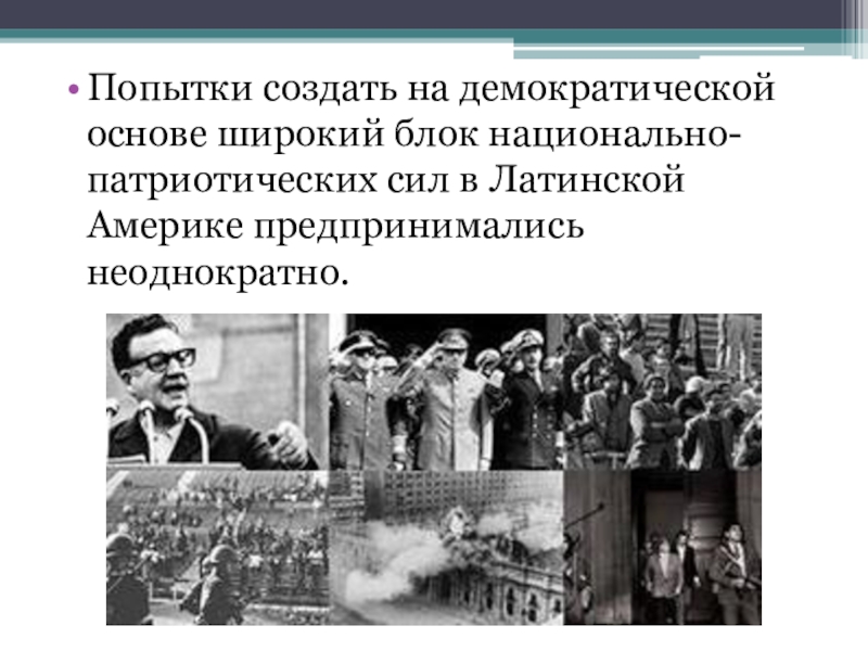 Слайд 16Попытки создать на демократической основе широкий блок национально-патриотических сил в Латинской