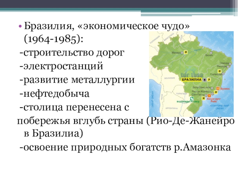 Слайд 11Бразилия, «экономическое чудо» (1964-1985):