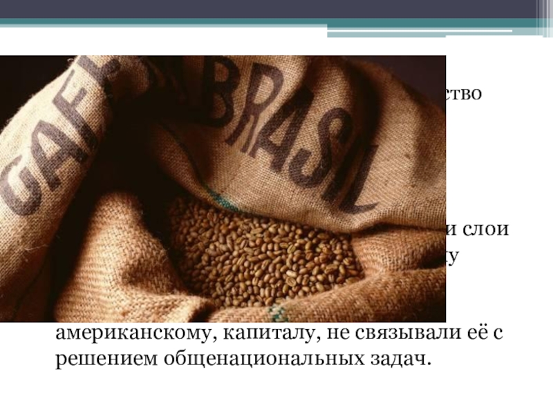 -не получающие выгод от модернизации слои населения рассматривали ее как форму подчинения экономики транснациональному, особенно американскому, капиталу, не связывали её с решением общенациональных задач.