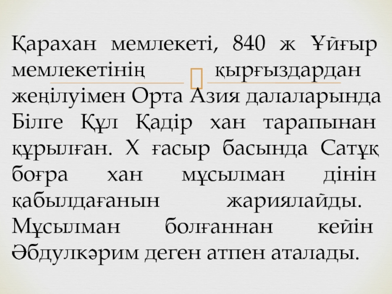 Слайд 8Қарахан мемлекеті, 840 ж Ұйғыр мемлекетінің қырғыздардан жеңілуімен Орта Азия далаларында
