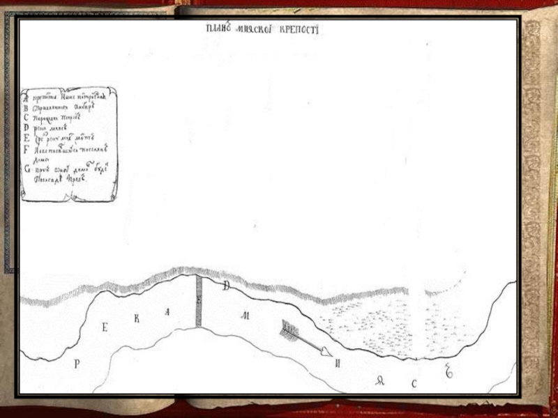 Im Süden der Festung…befindet sich ein hölzernes Festungsmauer, das um den Festungsflecken gebaut wurde. Hinter dem Festungsmauer nördlich gibt es Kirche des Propheten Elias, und weiter östlich befindet sich ein großer Festungsflecken, der etwa 130 Häuser zählt. Die meisten Häuser dort gehören den Bauern, die anderen den Kosaken. Dabei ist es auffällig, dass alle Häuser in einer geraden Linie stehen, und die Straßen zwischen ihnen die gleiche Breite haben. Es wird schon 13 solche Straßen gebaut…»