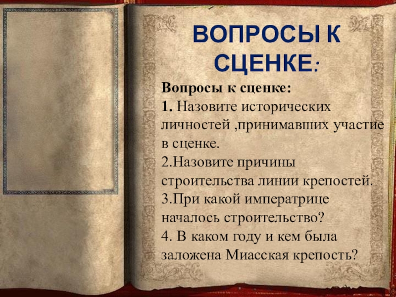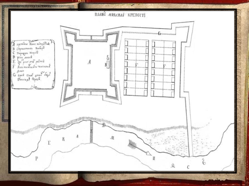 Juni. Die Festung wurde vor 5 Jahren gebaut. Sie befindet sich am Nordufer des Flusses Miass. Die kleine inwendige Festung befindet sich in der Mitte, näher an das Ufer des Flusses und hat die Form eines Quadrats. Innerhalb der Festung gibt es nur ein Haus des Kommandanten und mehrere Baracken für Soldaten. In der Nähe befinden sich einige Lebensmittel- und Waffenspeichern.