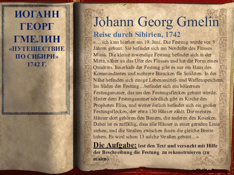 Die Aufgabe: lest den Text und versucht mit Hilfe der Beschreibung die Festung zu rekonstruieren (zu malen)