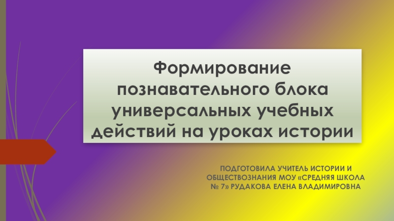 ПОДГОТОВИЛА УЧИТЕЛЬ ИСТОРИИ И ОБЩЕСТВОЗНАНИЯ МОУ «СРЕДНЯЯ ШКОЛА № 7» РУДАКОВА ЕЛЕНА ВЛАДИМИРОВНА