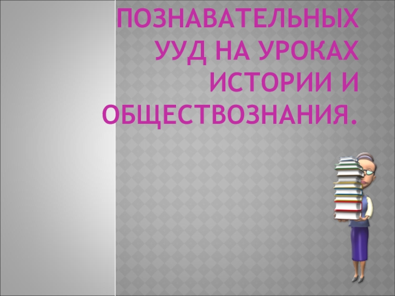 Слайд 1ФОРМИРОВАНИЕ ПОЗНАВАТЕЛЬНЫХ УУД НА УРОКАХ ИСТОРИИ И ОБЩЕСТВОЗНАНИЯ.