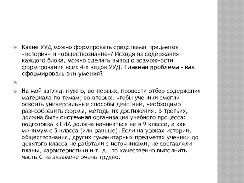 Какие УУД можно формировать средствами предметов «история» и «обществознание»? Исходя из