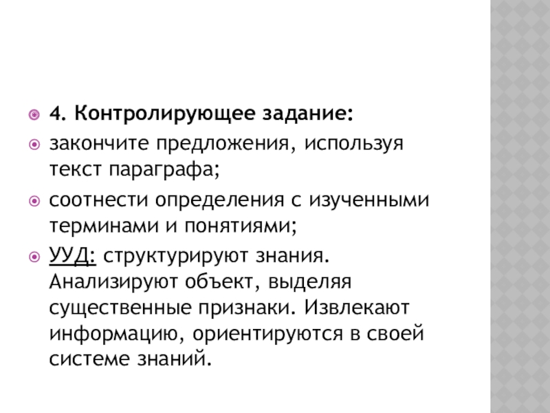 4. Контролирующее задание:
