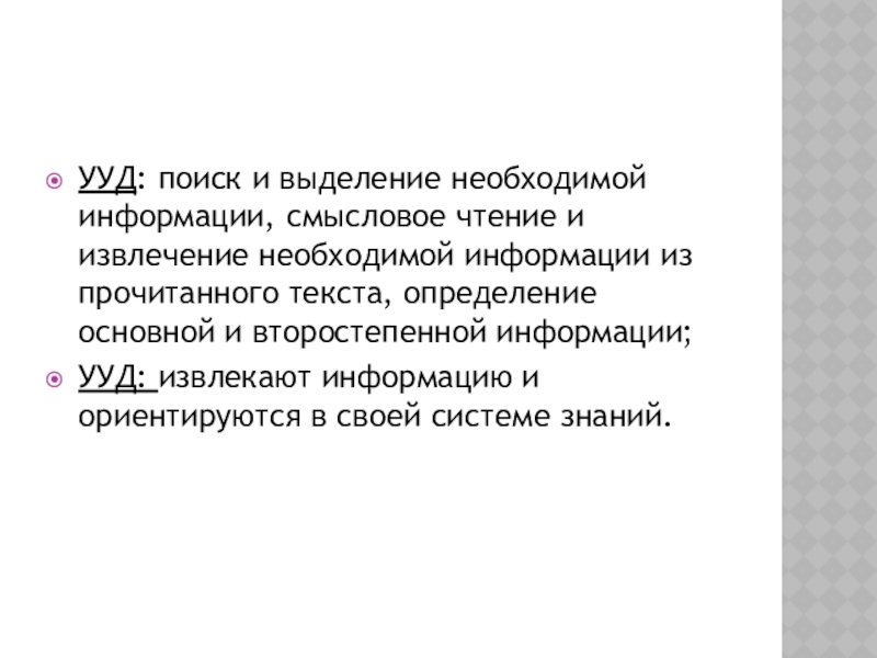УУД: поиск и выделение необходимой информации, смысловое чтение и извлечение необходимой