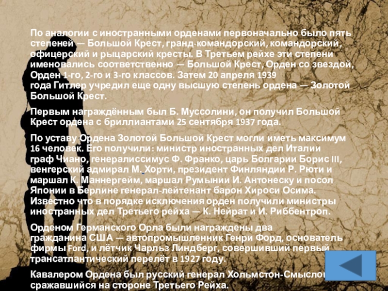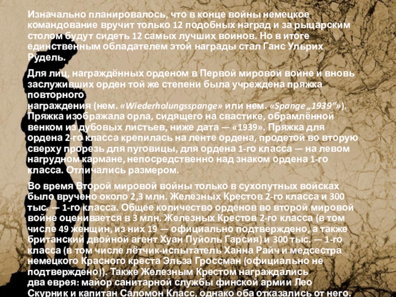 Слайд 23Изначально планировалось, что в конце войны немецкое командование вручит только 12
