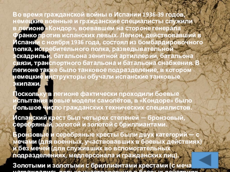 Слайд 6Во время гражданской войны в Испании 1936-39 годов, немецкие военные и