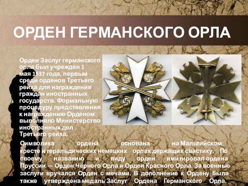 Слайд 3ОРДЕН ГЕРМАНСКОГО ОРЛА
