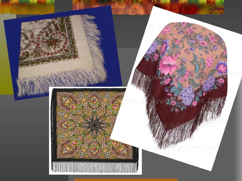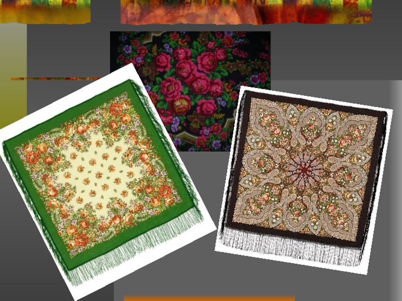 Павлово-Посадские набивные платки —шерстяные и полушерстяные платки, украшенные традиционным красочным набивным