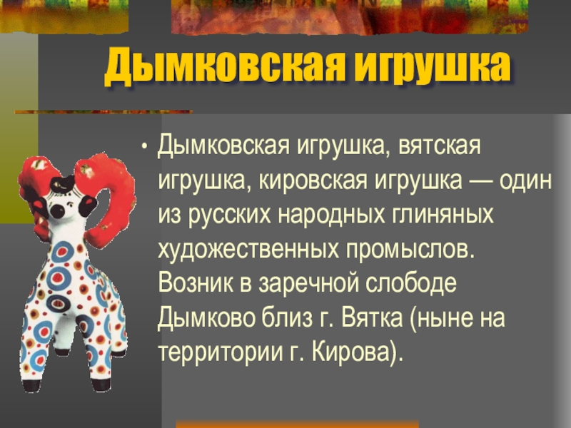 Дымковская игрушка, вятская игрушка, кировская игрушка — один из русских народных