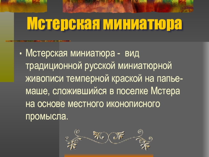 Мстерская миниатюра - вид традиционной русской миниатюрной живописи темперной краской