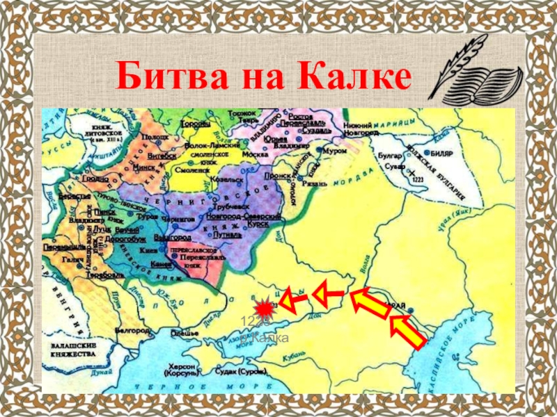 Итак в 1223 году монголы вторглись в Половецкие степь. Половецкий хан обратился к русским князьям за помощью.