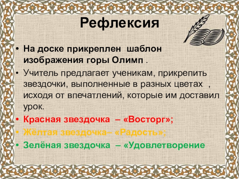 звездочки, выполненные в разных цветах , исходя от впечатлений, которые им доставил урок.