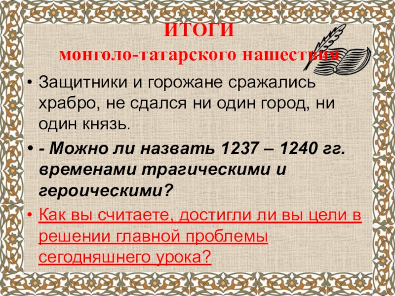 - Можно ли назвать 1237 – 1240 гг. временами трагическими и героическими?