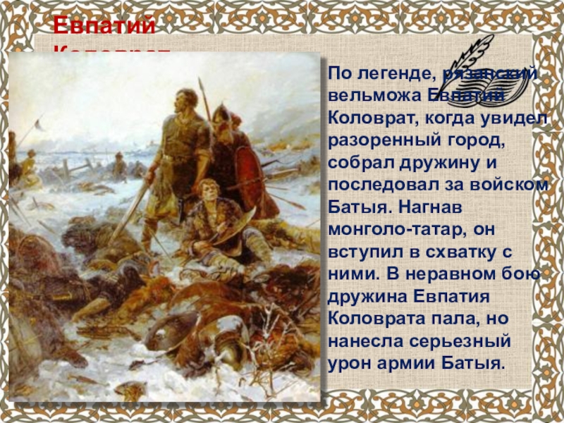 4. Что вы можете рассказать о подвиге Евпатия Коловрата?