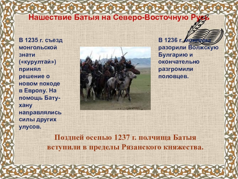 Слайд 16Поздней осенью 1237 г. полчища Батыя