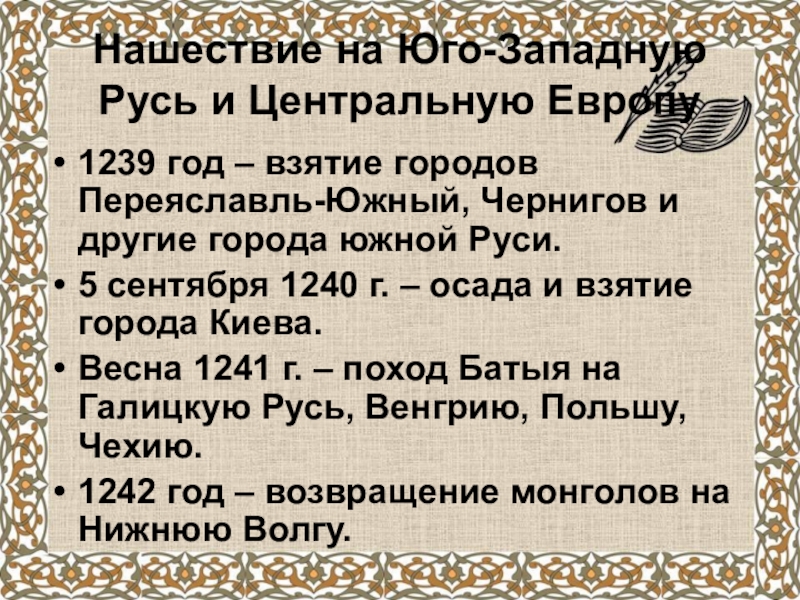 Слайд 34Нашествие на Юго-Западную Русь и Центральную Европу