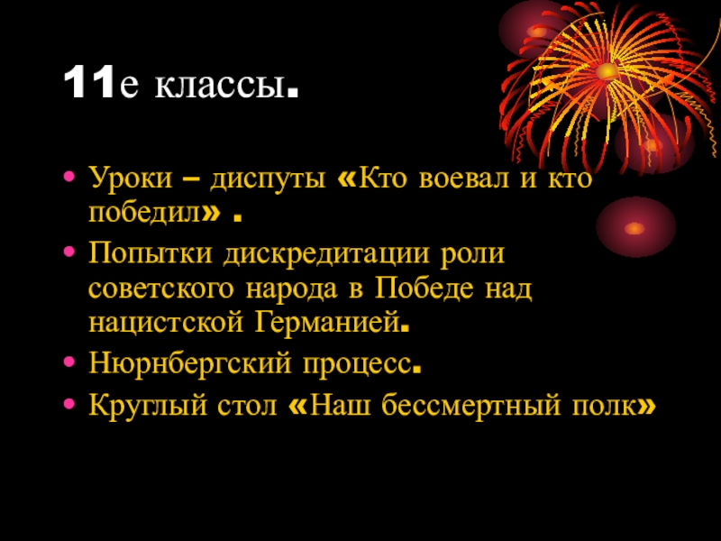 11е классы.Уроки – диспуты «Кто воевал и кто победил» .Попытки дискредитации роли советского народа в Победе над