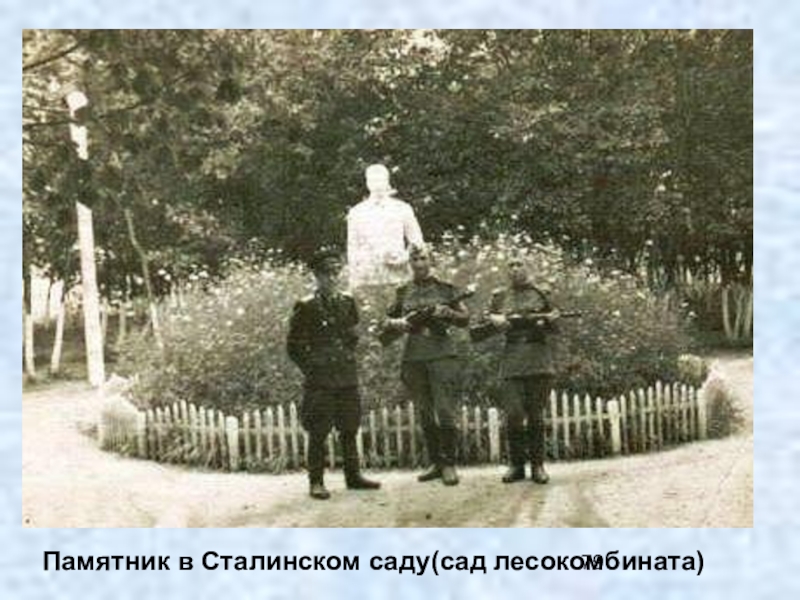 Слайд 79Памятник в Сталинском саду(сад лесокомбината)