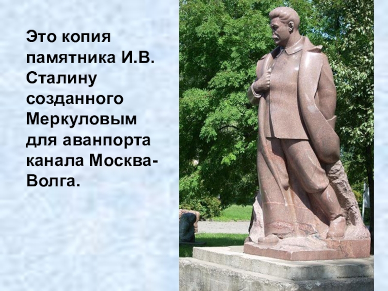 Слайд 75Это копия памятника И.В. Сталину созданного Меркуловым для аванпорта канала Москва-Волга.