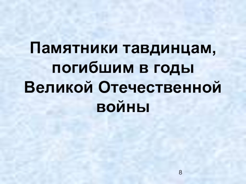 Слайд 8Памятники тавдинцам, погибшим в годы Великой Отечественной войны