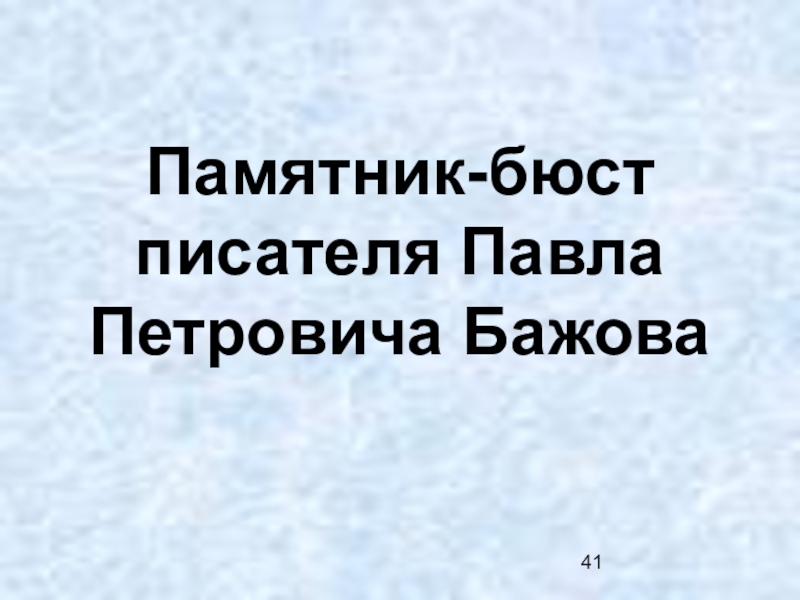 Слайд 41Памятник-бюст писателя Павла Петровича Бажова