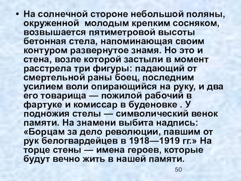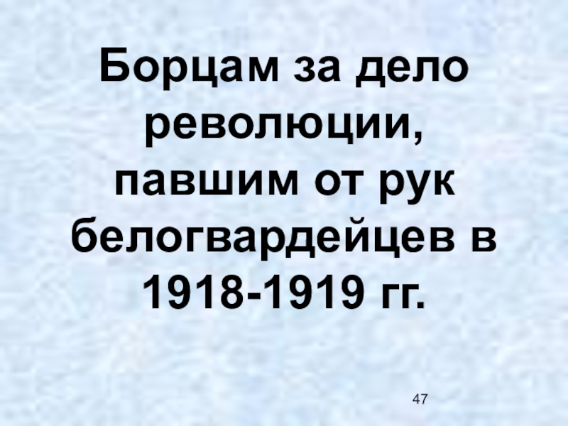 Слайд 47Борцам за дело революции, павшим от рук белогвардейцев в 1918-1919 гг.