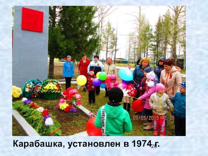 Слайд 1328 октября 1977 года состоялось торжественное открытие мемориала тавдинцам, погибшим в