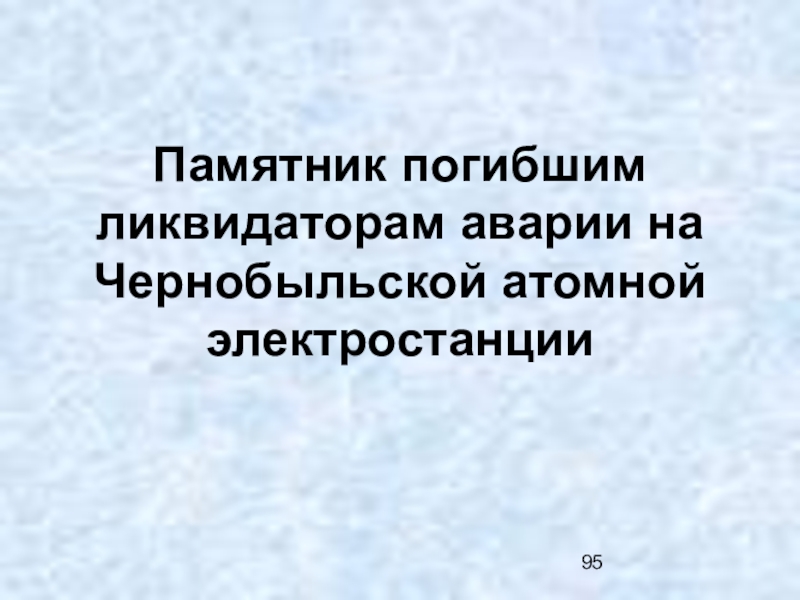 Слайд 95Памятник погибшим ликвидаторам аварии на Чернобыльской атомной электростанции