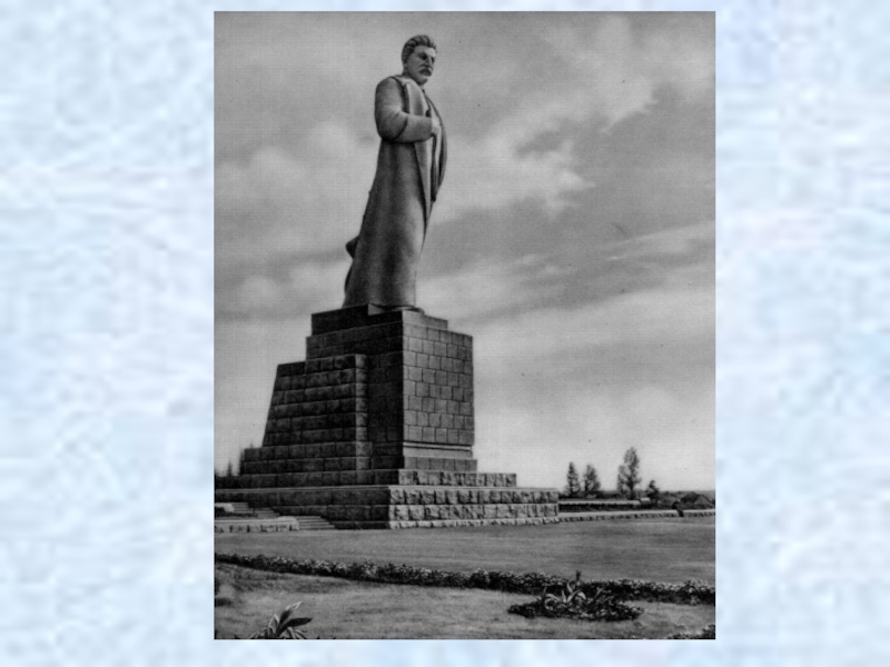 Слайд 74Памятник Сталину на центральной площади города. Автор - скульптор Сергей Меркуров,