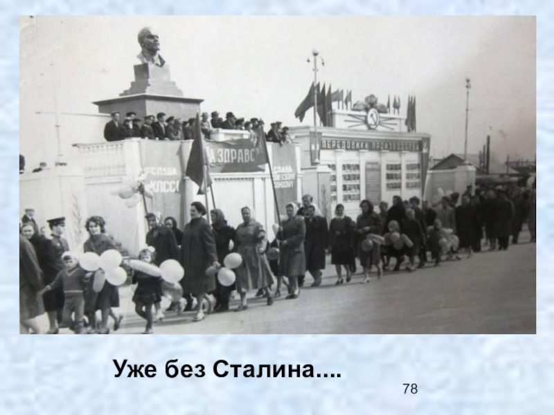 Слайд 77В период борьбы с культом личности памятник Сталину заменили на бюст