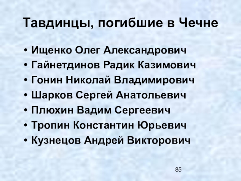 Слайд 85Тавдинцы, погибшие в Чечне
