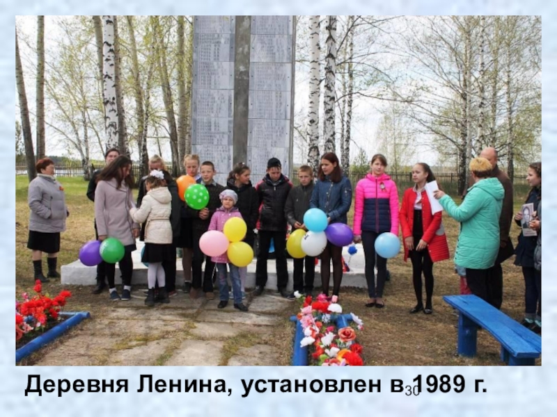 Слайд 30Деревня Ленина, установлен в 1989 г.